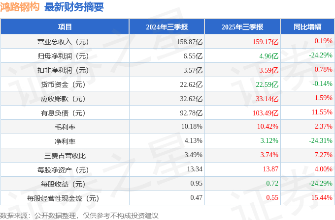 鸿路钢构(002541)2025年三季报简析:增收不增利,公司应收账款体量较大