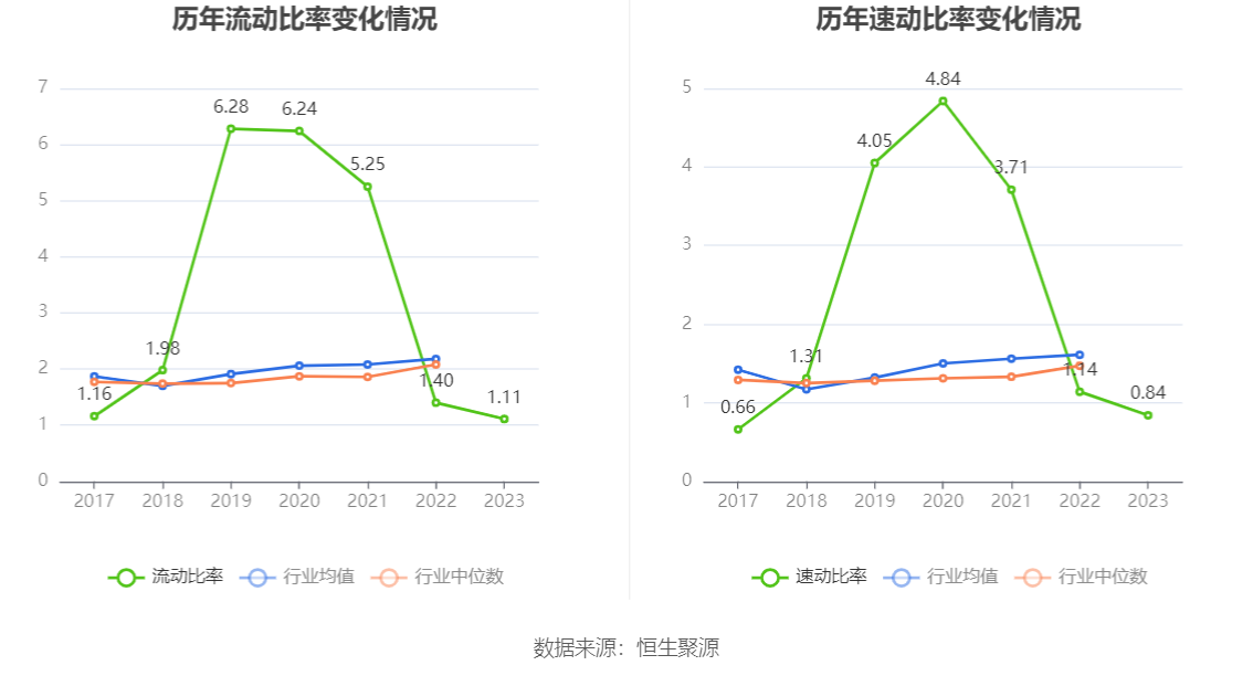 2023年,公司流动比率为1.11,速动比率为0.84。
