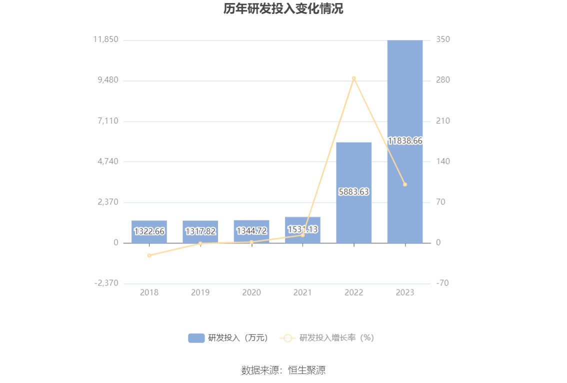 2023年全年,公司研发投入金额为1.18亿元,同比增长101.21%;研发投入占营业收入比例为3.89%,相比上年同期上升0.61个百分点。此外,公司全年研发投入资本化率为0。