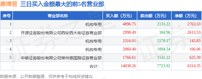 10月22日惠博普(002554)龙虎榜数据:机构净买入3727.3万元(3日)