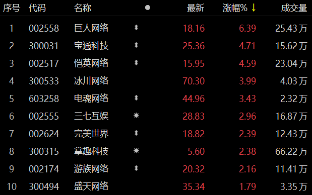 游戏股快速拉升 巨人网络涨超6%