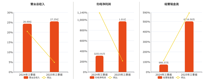 公司营业总收入为27.25亿元。归母净利润为1.01亿元。经营活动现金净流入为6716.50万元,在已披露的同业公司中排名第93。