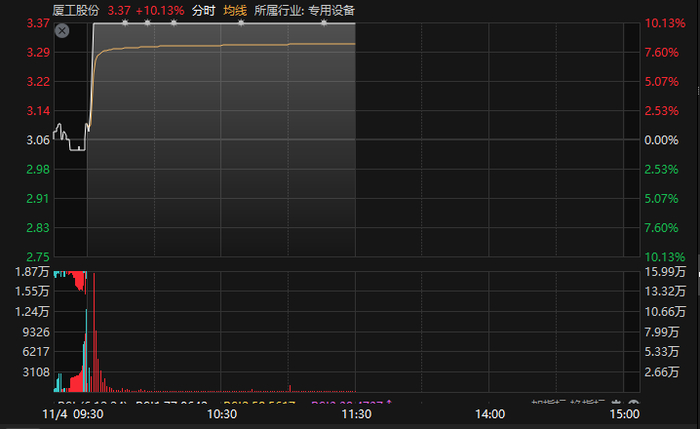 11月4日,福建本地股反复走强,截至午间休市,平潭发展、福建水泥、厦工股份、漳州发展、闽东电力等10余只个股涨停。其中,厦工股份、漳州发展、闽东电力等多只个股盘中呈现直线拉升的走势,短短数分钟之内涨停封板。