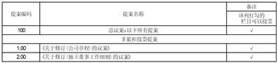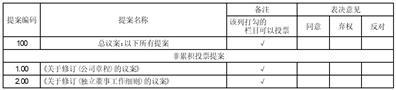 1.如欲投票同意提案,请在“同意”栏内相应地方填上“√”;如欲投票反对提案,请在 “反对”栏内相应地方填上“√”;如欲投票弃权提案,请在“弃权”栏内相应地方填上“√”。