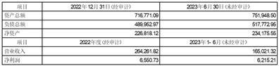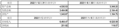 财务数据:截至2023年6月30日,总资产14,572.43万元,净资产235.2万元;2023年1-6月,营业收入7,196.24万元,净利润93.93万元,以上财务数据未经审计。