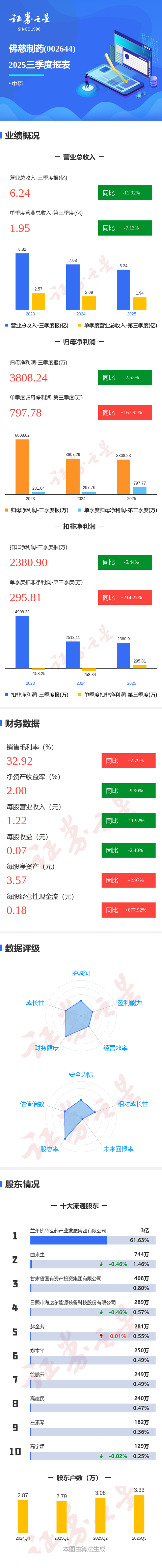 图解佛慈制药三季报:第三季度单季净利润同比增长167.92%