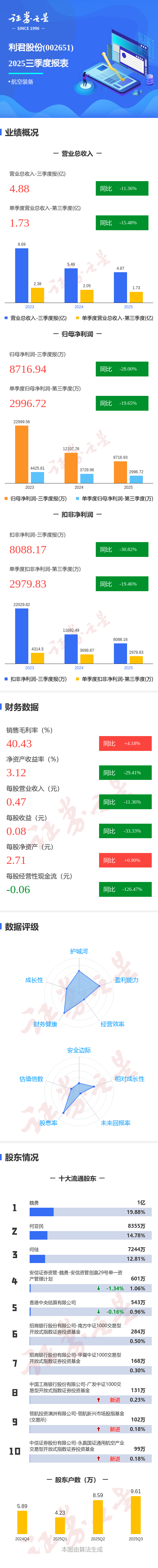 图解利君股份三季报:第三季度单季净利润同比下降19.66%