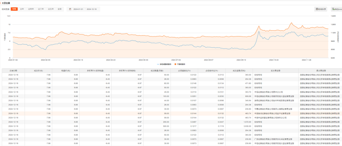 今日大宗交易成交1388万股,成交额1.09亿元,占当日总成交额的17.63%,成交价7.86元,较市场收盘价折价9.45%。