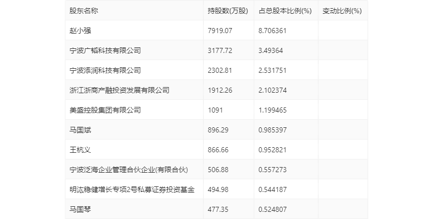 年报显示,2023年年末公司十大流通股东中,新进股东为明汯稳健增长专项2号私募证券投资基金、马国琴,取代了三季度末的黄泽坚、马国凤。在具体持股比例上,马国斌持股有所上升,赵小强、美盛控股集团有限公司持股有所下降。