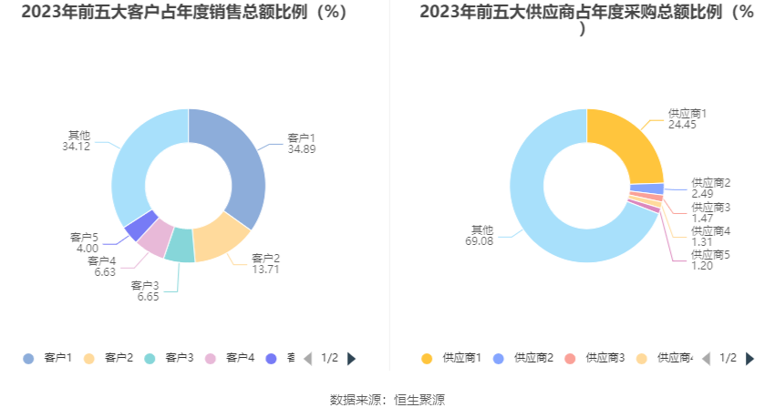 报告期内,公司前五大客户合计销售金额6.47亿元,占总销售金额比例为65.88%,公司前五名供应商合计采购金额1.79亿元,占年度采购总额比例为30.92%。