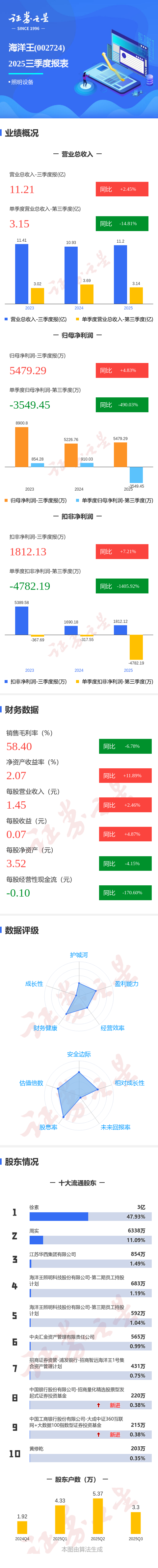 图解海洋王三季报:第三季度单季净利润同比下降490.03%