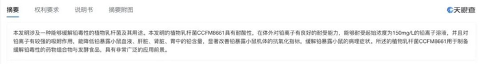 凤凰网财经《公司研究院》注意到,无论是直播间还是购物平台,商品页面都展示了格乐瑞持有的发明专利证书。然而,专利名为“一种能够缓解铅毒性的植物乳杆菌及其用途”。而事实上,这一专利发明用于制备缓解铅毒性的药物组合物与发酵食品,与促进长高风马牛不相及。