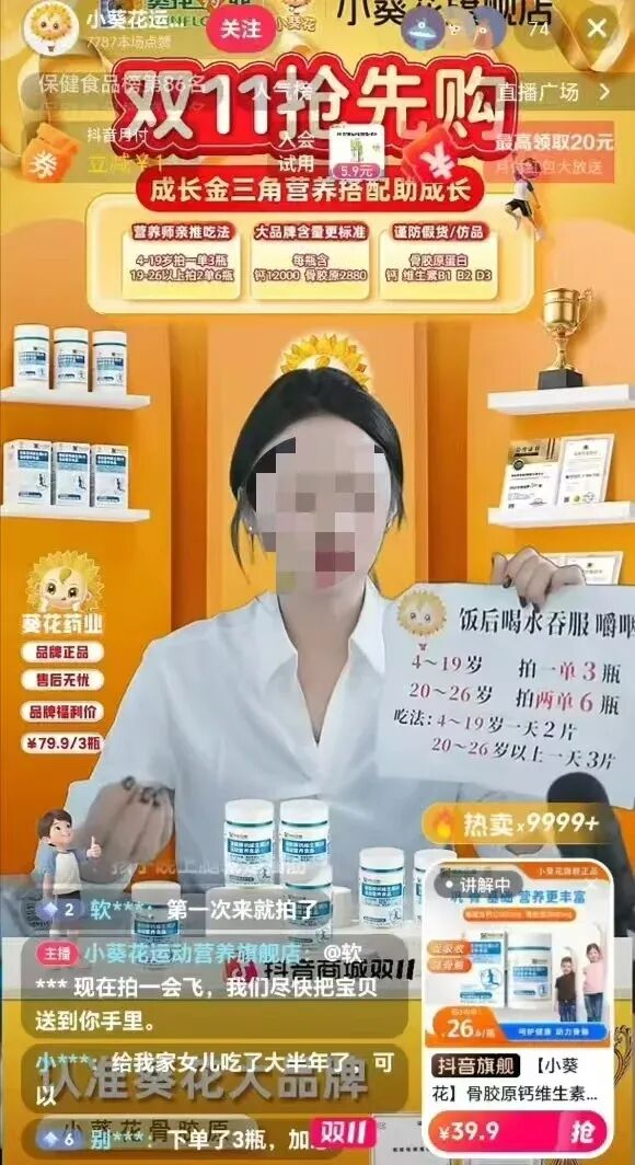 凤凰网财经《公司研究院》注意到,这个“双11”,一些打着葵花官方品牌名义的直播间里,主播们正卖力推销一款号称能助力长高的补钙产品。其宣传话术隐晦暗示,即使在人体自然停止发育后,该产品仍能起到“补救”作用。然而,这款由上海海维生物科技有限公司(下称“海维生物”)生产的贴牌产品,宣传页展示的专利证书,竟与产品宣称的功效毫无关联。