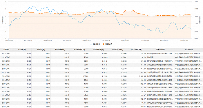 7月7日大宗交易成交1384.58万股,成交额1.65亿元,占当日总成交额的17.41%,成交价11.91元,较市场收盘价13.41元折价11.19%。