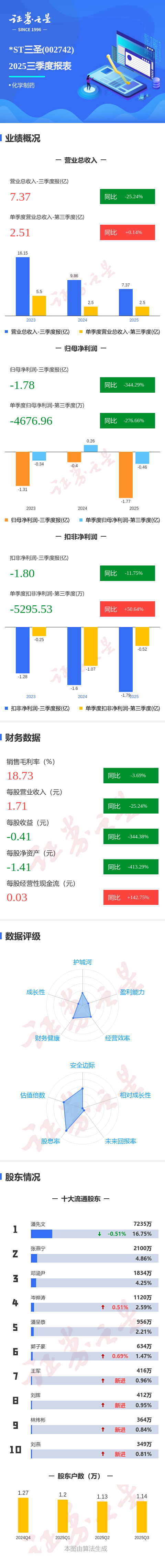 图解*ST三圣三季报:第三季度单季净利润同比下降276.67%