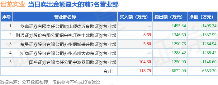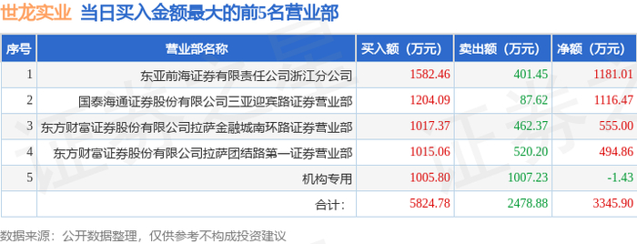 10月29日世龙实业(002748)龙虎榜数据:游资佛山系、宁波桑田路上榜