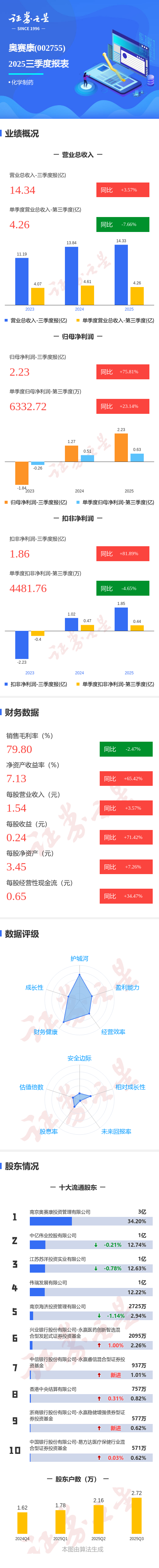 图解奥赛康三季报:第三季度单季净利润同比增长23.15%