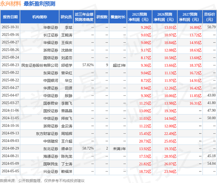 东吴证券股份有限公司曾朵红,阮巧燕,胡锦芸近期对永兴材料进行研究并发布了研究报告《2025年三季报点评:碳酸锂成本优势维持,涨价弹性可期》,给予永兴材料买入评级。