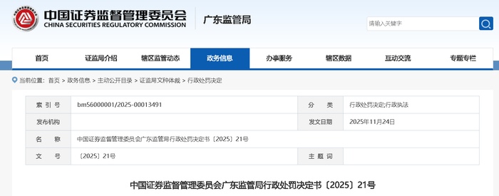 公告显示,中国证券监督管理委员会广东监管局11 月 17 日发布〔2025〕21 号行政处罚决定书,对常熟市新华化工有限公司(简称新华化工)涉嫌短线交易“天际股份”股票案作出处罚。