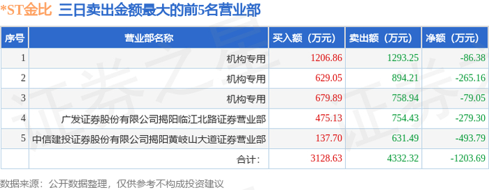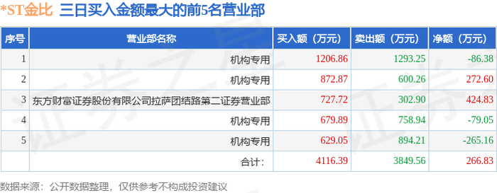 9月26日*ST金比(002762)龙虎榜数据:机构净卖出158.0万元(3日)