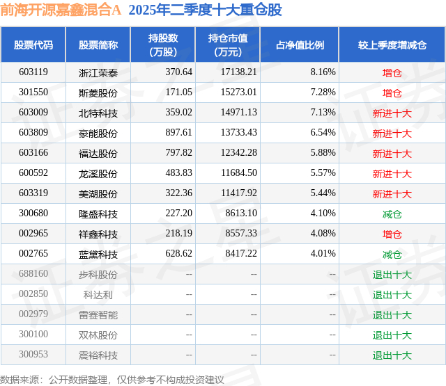 前海开源嘉鑫混合A的前十大重仓股如下: