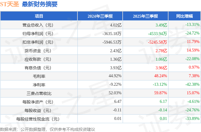 ST天圣(002872)2025年三季报简析:净利润同比下降24.72%