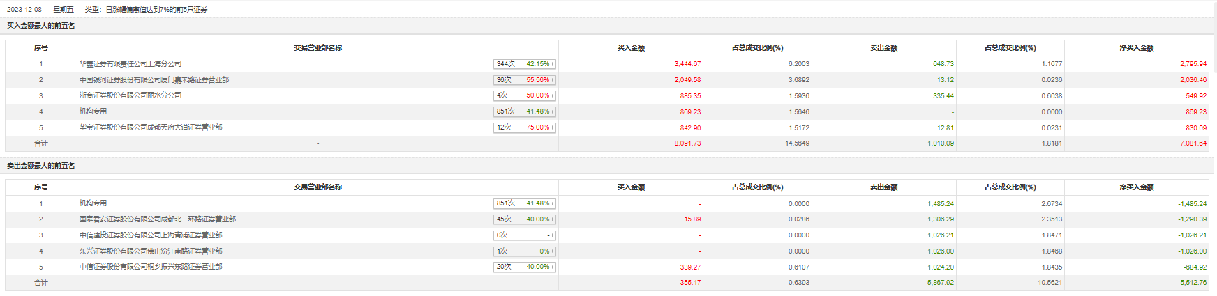 12月8日,元隆雅图今日涨停,全天换手率达14.07%,振幅达11.58%。龙虎榜数据显示,营业部席位合计净买入1568.88万元。其中,机构买入869.23万元,卖出1485.24万元,合计净卖出616.01万元。此外,华鑫证券上海分公司、中国银河证券厦门嘉禾路证券营业部分别买入3444.67万元、2049.58万元;国泰君安证券成都北一环路证券营业部、中信建投证券上海青浦证券营业部分别卖出1306.29万元、1026.21万元。