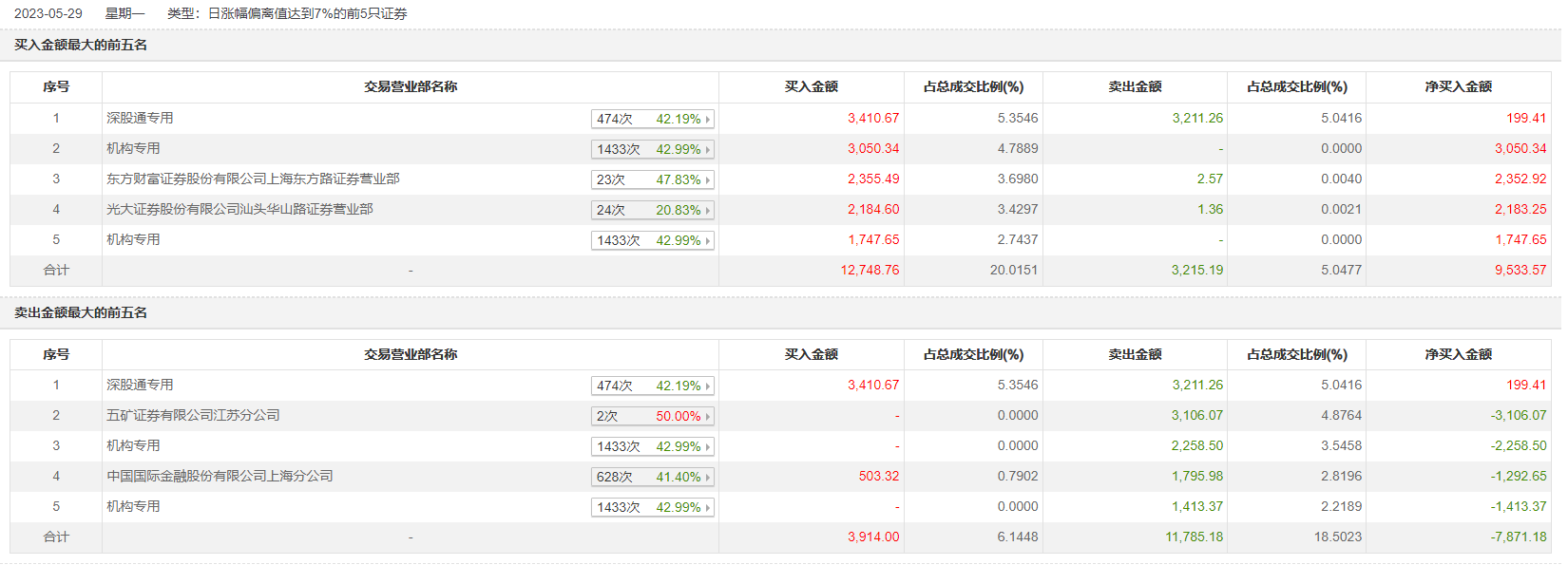具体来看,机构买入4797.99万元,卖出3671.87万元,合计净买入1126.13万元。此外,深股通专用、东方财富证券上海东方路证券营业部分别买入3410.67万元、2355.49万元;深股通专用、五矿证券有限公司江苏分公司分别卖出3211.26万元、3106.07万元。