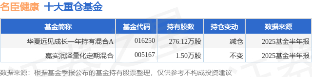 重仓名臣健康的公募基金请见下表: