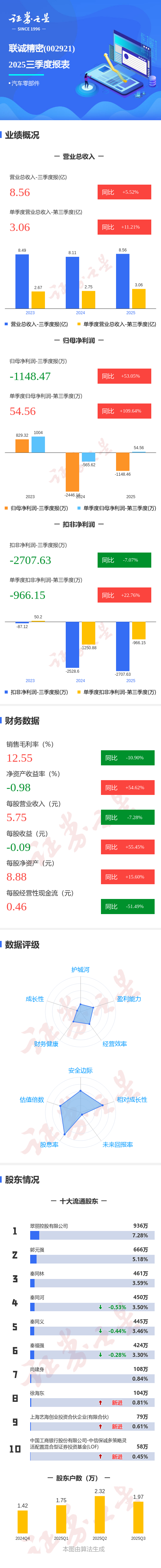 图解联诚精密三季报:第三季度单季净利润同比增长109.65%