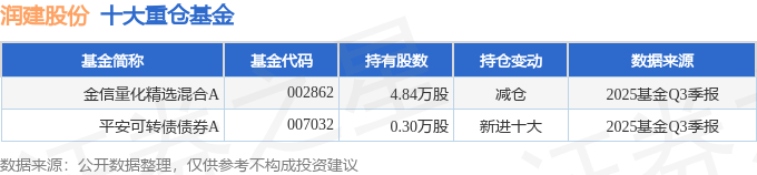 持有润建股份最多的基金为金信量化精选混合A,目前规模为0.22亿元,最新净值1.1598(10月30日),较上一交易日下跌3.24%,近一年上涨1.64%。该基金现任基金经理为谭佳俊。