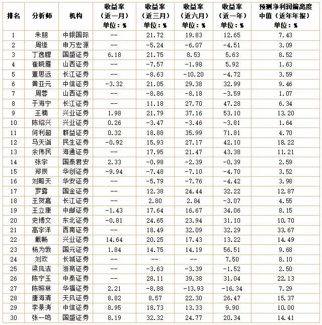 数据来源:南财投研通分析师榜桂冠花落中银国际朱朋