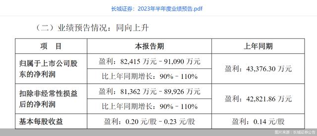 发布半年度业绩预告,数据显示,上半年其预计实现归母净利润8.24亿元至9.11亿元,同比增长90%至110%。