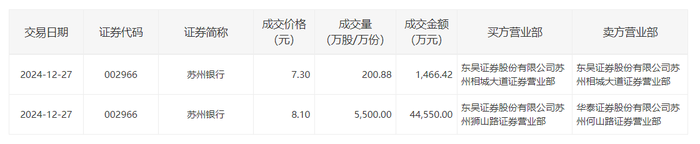 苏州银行今日大宗交易成交5700.88万股,成交额4.6亿元