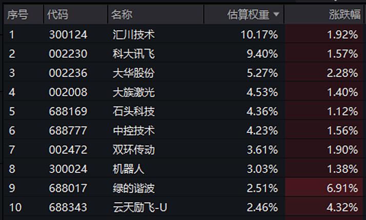 【$机器人ETF基金(159213)标的指数前十大成分股】