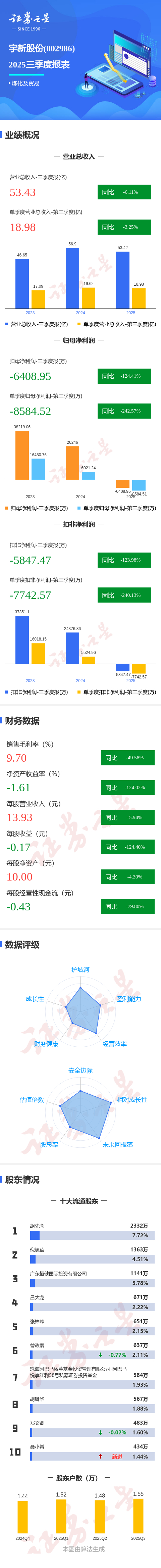 图解宇新股份三季报:第三季度单季净利润同比下降242.57%