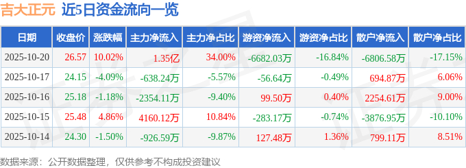10月20日的资金流向数据方面,主力资金净流入1.35亿元,占总成交额34.0%,游资资金净流出6682.03万元,占总成交额16.84%,散户资金净流出6806.58万元,占总成交额17.15%。