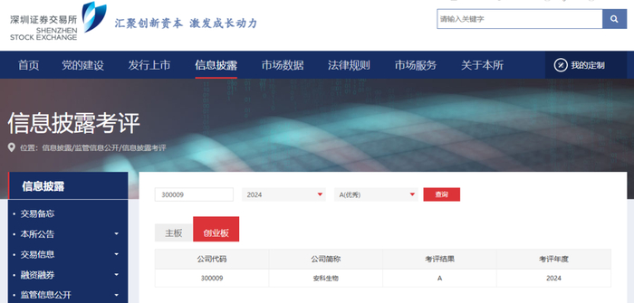 九度获评A级!安科生物信息披露工作再获深交所高度认可