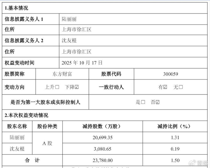 2025年10月初,东方财富发布公告,公布东方财富实控人其实的妻子陆丽丽女士、其实的父亲沈友根转让股权的接盘方。