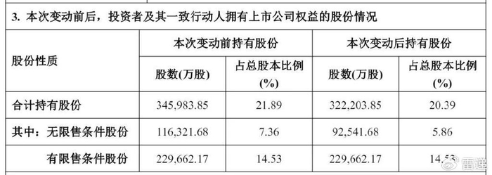 本次权益变动后,沈友根不再持有公司股份,陆丽丽女士持有公司股份占公司总股本的比例由2.32%下降至1.01%,出让方及一致行动人合计拥有权益的股份占公司总股本的比例由21.89%下降至20.39%。