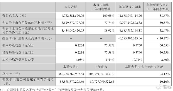 其中,东方财富2025年第三季营收47.33亿,同比增长100.65%;净利为35.3亿元,同比增77.74%;扣非后净利为34.34亿元,同比增长88.95%。
