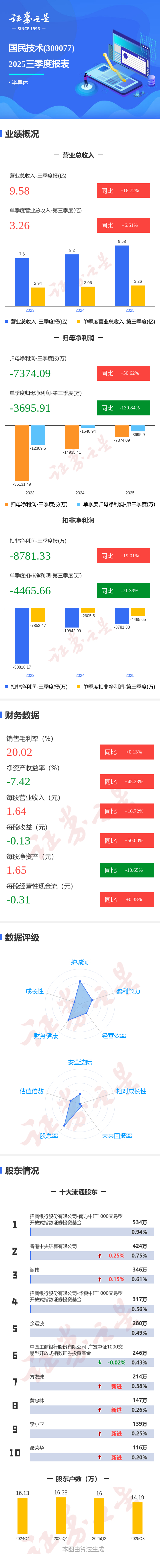 图解国民技术三季报:第三季度单季净利润同比下降139.85%