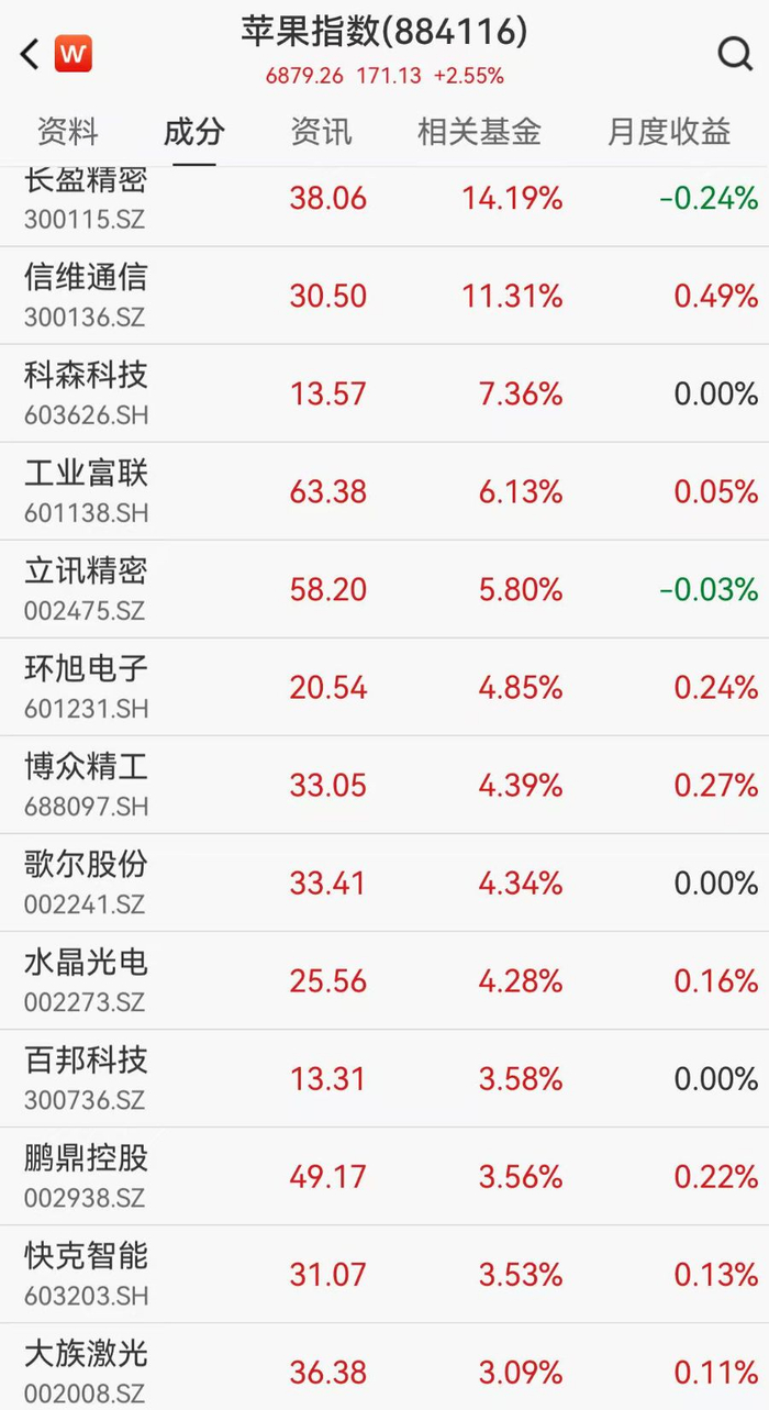 苹果将加大对华投资,概念股集体异动,长盈精密涨超14%