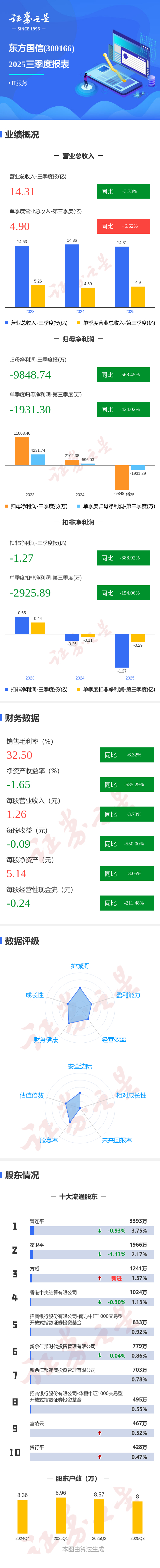 图解东方国信三季报:第三季度单季净利润同比下降424.03%