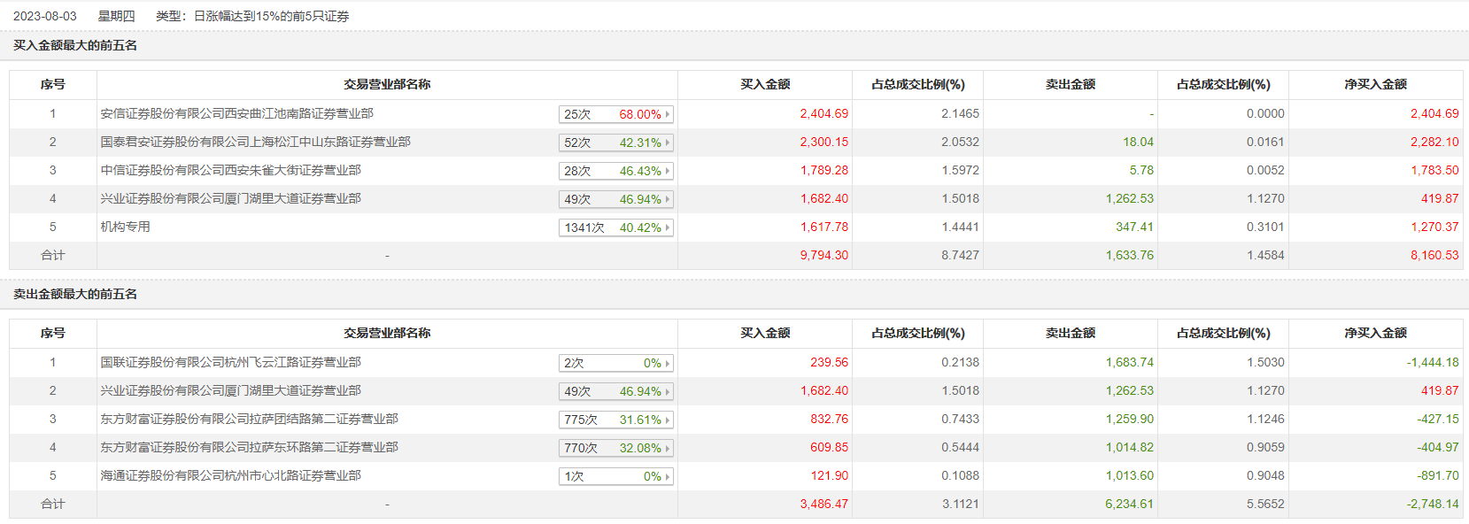 8月3日,天晟新材今日涨停,龙虎榜数据显示,上榜营业部席位全天成交1.82亿元,占当日总成交金额比例为16.25%。其中,买入金额为1.16亿元,卖出金额为6605.84万元,合计净买入4992.52万元。