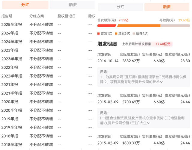 值得注意的是,翰宇药业一边频频融资,另一边却多年未分红。