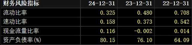从数据看,2022年至2024年,翰宇药业的资产负债率分别为64.09%、76.10%、80.15%,三年资产负债率合计上升16.06个百分点。