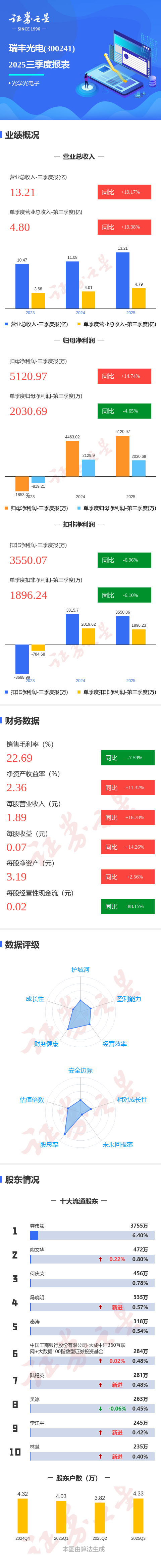 图解瑞丰光电三季报:第三季度单季净利润同比下降4.66%