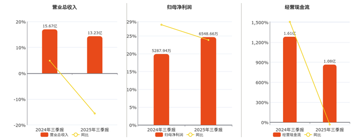 公司营业总收入为13.23亿元。归母净利润为6548.66万元,较去年同报告期归母净利润增加1260.72万元,实现3年连续上涨,同比较去年同期上涨23.84%。经营活动现金净流入为1.08亿元。