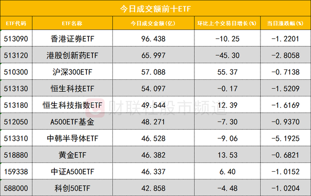 从成交额前十的ETF来看,香港证券ETF(513090)成交额位居首位,港股创新药ETF(513120)成交额位居次席。